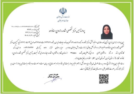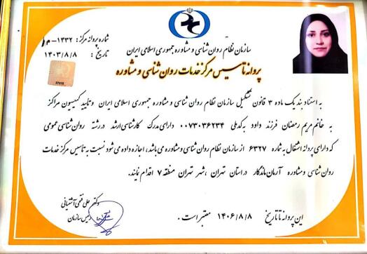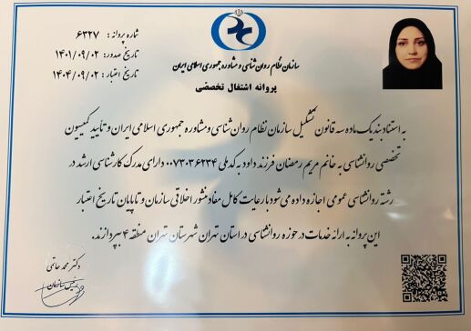 *پروانه تخصصی از سازمان نظام روانشناسی به شمارهنظام ۶۳۲۷